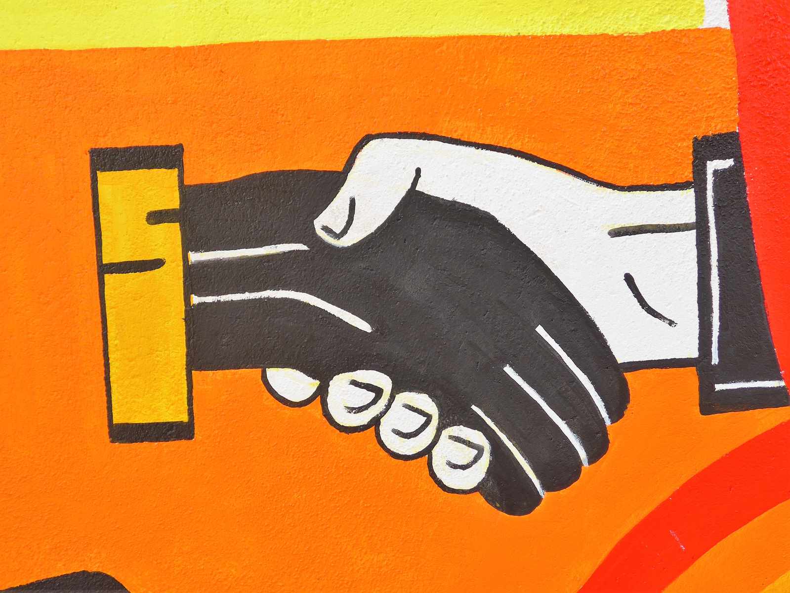 Ernest Novo dépasse la « déploration » rituelle du deuil pour inviter au pardon des offenses. C’est, à mon sens, la signification de ces mains serrées constituant un tiers du décor du portrait. En y regardant bien, nous voyons des mains blanches serrer des mains noires, et des mains noires serrer des mains jaunes. Comment ne pas y voir une invite à la fraternité entre des Hommes de couleurs différentes. C’est également une référence discrète aux circonstances du drame. Une référence certes mais pas une condamnation. Ces poignées de mains sont des appels réitérés et insistants à l’amitié, à la tolérance et à l’amour des autres. Le contraire d’un message de vengeance.