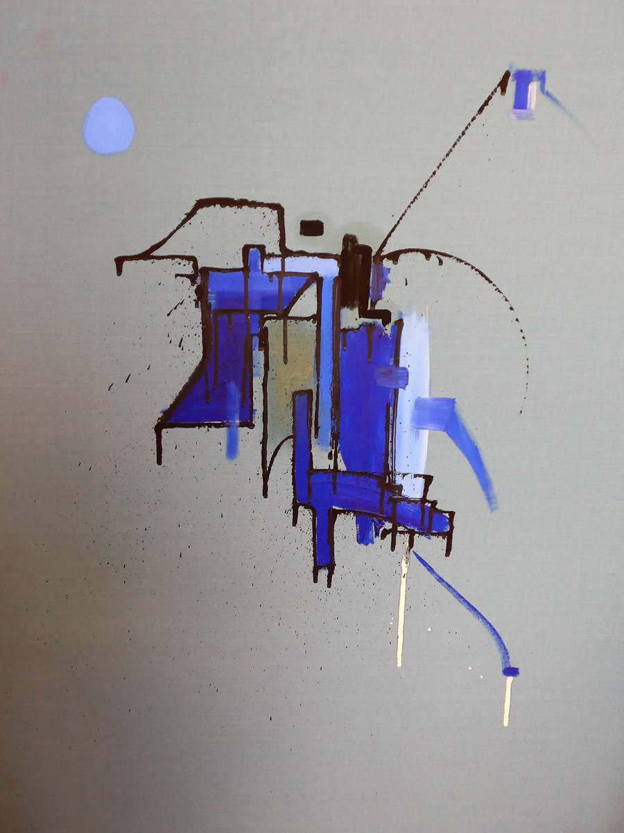 En pénétrant dans d’autres pièces, on remonte dans le temps. Les toiles toujours abstraites, traduisent diverses influences ; celle de Miro, en particulier. Les œuvres dessinées se caractérisent par le dynamisme du trait et la recherche de l’épure. Somme toute, les œuvres anciennes sont les témoins d’un itinéraire, partant de l‘absolu nécessité de la copie, en passant par le vertige du trait libéré de la contrainte de la représentation, par l’essai de nouveaux supports, de nouvelles palettes de couleurs.