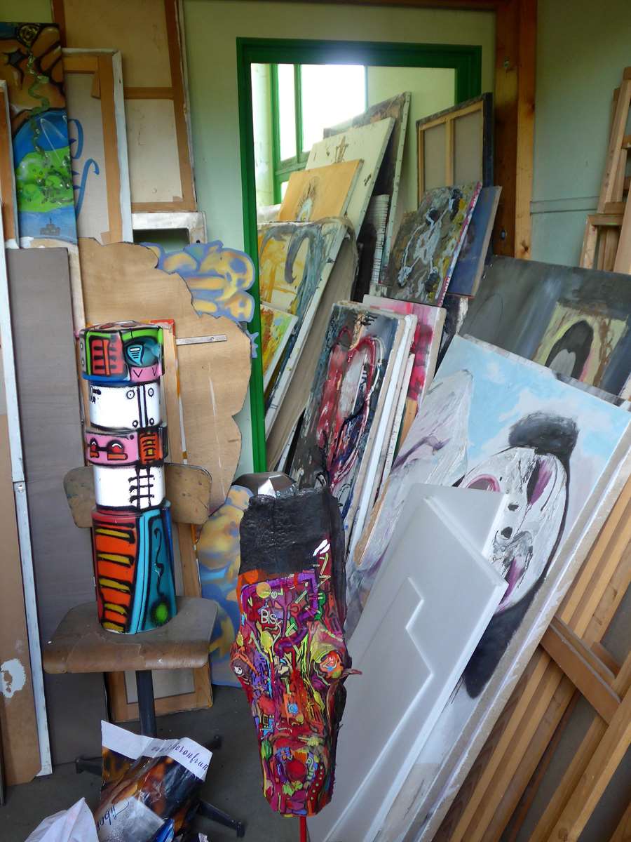 C’est la raison qui m’amène à vous proposer dans ce billet une visite d’atelier, celui d’un plasticien touche- à- tout de talent, Bisk.