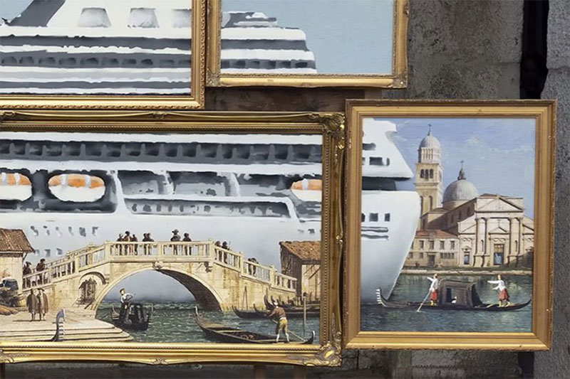 La seconde raison est l’écho qu’a donné Banksy à la lutte des habitants de Venise contre les immenses paquebots de croisière qui polluent non seulement l’air mais aussi l’écosystème et le paysage.