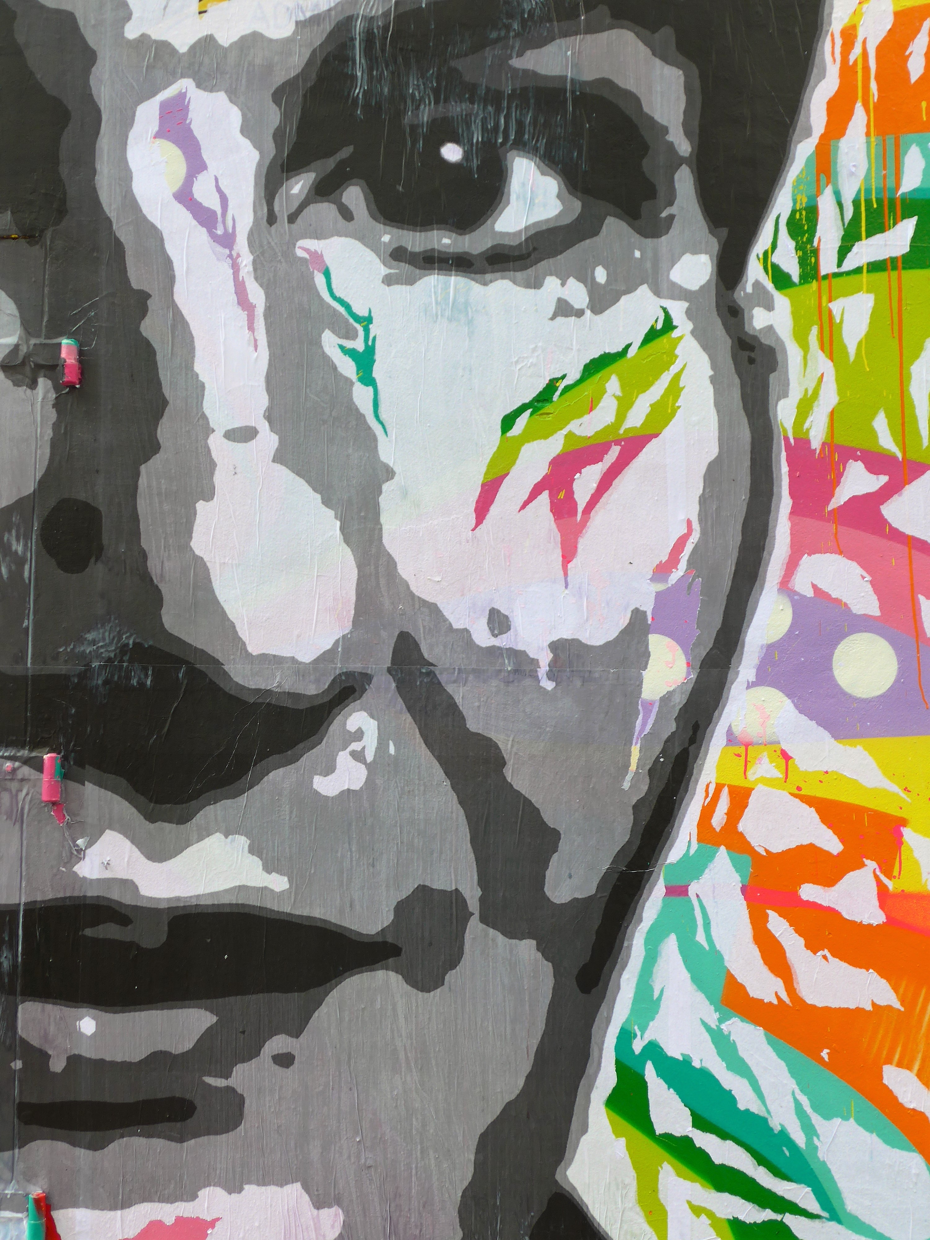 L’analyse de l’œuvre révèle d’autres intentions. D’abord, le portrait qu’a choisi l’artiste est la photographie qui a été utilisée lors de la panthéonisation. Histoire de faire clairement le lien entre l’entrée de Mme Veil au panthéon et Mme Veil, symbole de la République.