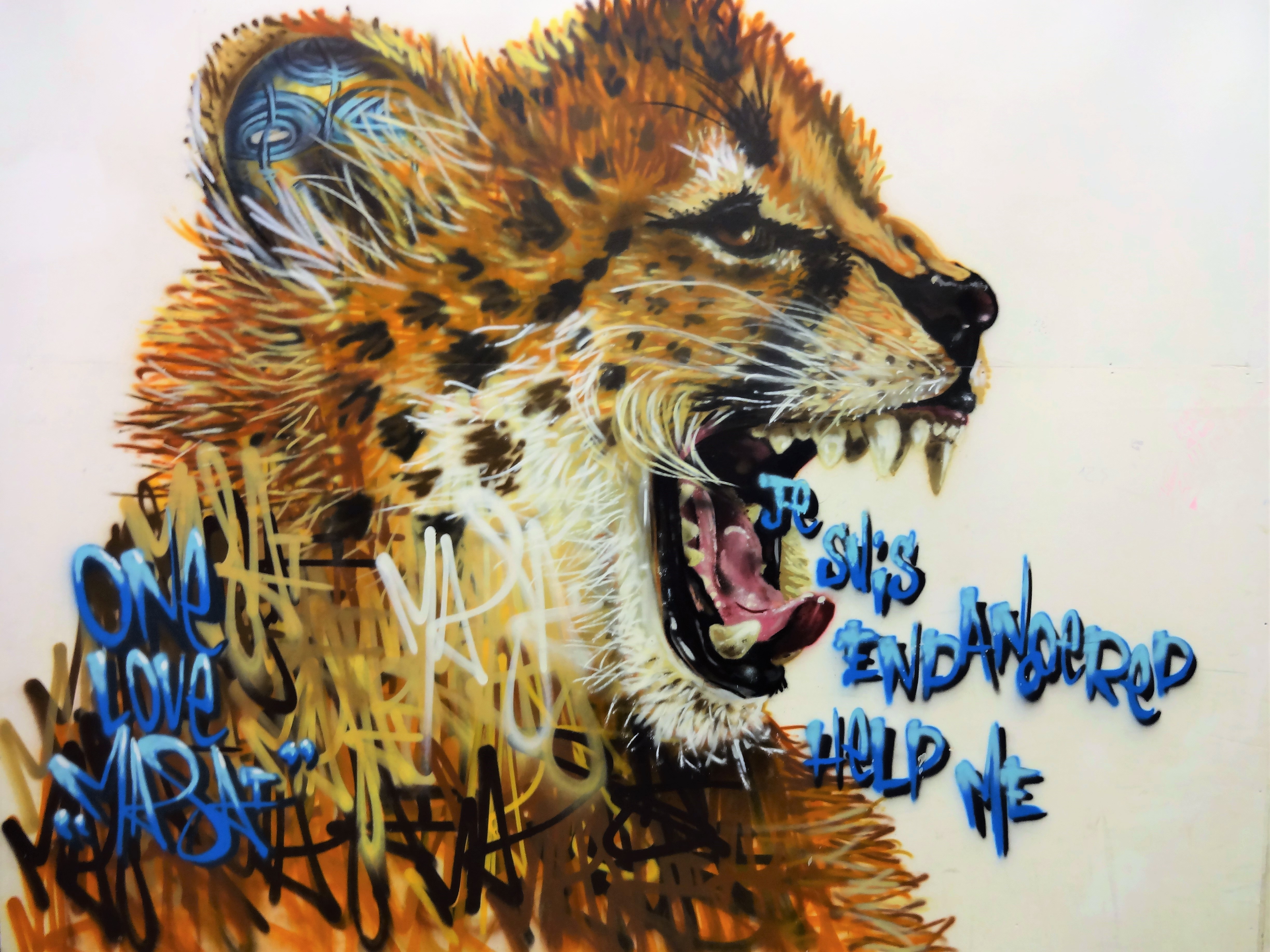 Parmi ces « inconnus » un artiste dont les œuvres m’ont frappé par leur qualité. C’étaient de beaux portraits d’animaux peints d’une manière hyperréaliste. Des inscriptions complétaient les œuvres ; une signature illisible, « One Love », « Je suis endangered, help me! », « One love ». Elles éclairaient quelque peu la signification. Sans vraiment tout saisir, je comprenais qu’il s’agissait d’animaux en danger qui voulaient être aidés.