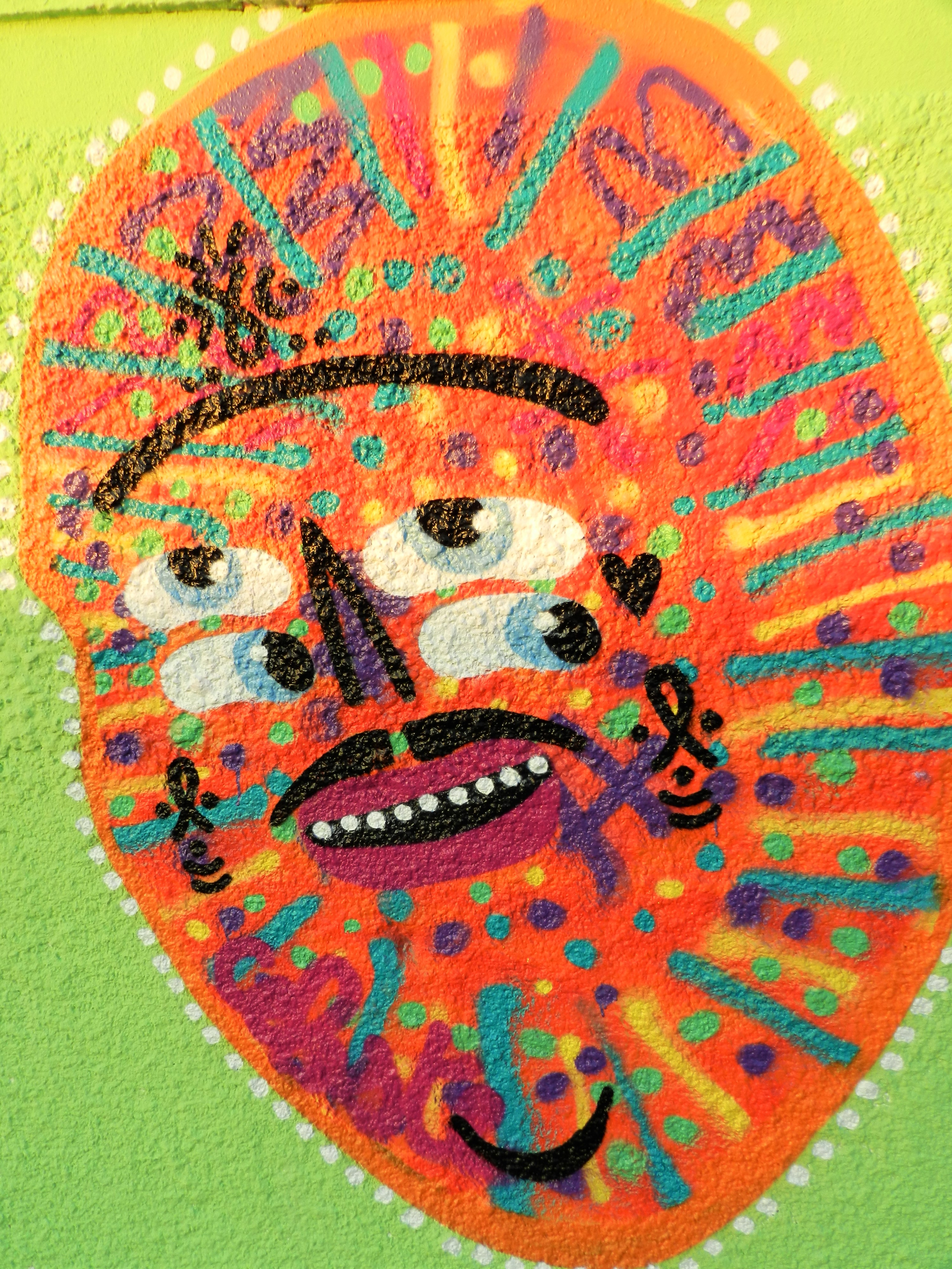 Revenons aux « portraits » des street artists aujourd’hui, les « portraits ressemblants » correspondent aux attentes des commanditaires ou aux situations. Les « portraits imaginaires » conservent les traits forts d’un visage pour exprimer autre chose que la relation à un modèle virtuel. L’ensemble des traits forment un pattern servant de support à la créativité de l’artiste. La surface du visage sera traitée comme les autres surfaces (aplats colorés, accumulation des formes et des couleurs dans l’espace déterminé par les contours du visage etc.)