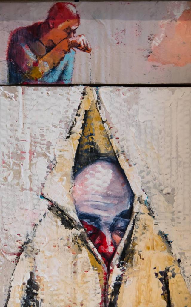 Les relations que nous entretenons avec une œuvre, pas seulement une toile, mais l’ensemble des productions d’un peintre, est une relation intime et complexe. Ainsi en est-il des liens entre les personnages de Jean Rustin et de Philippe Hérard. La question des relations entre les visages ruinés par la folie et le désespoir des personnages de Jean Rustin et les premiers Gugusses d’Hérard est trop indiscrète pour que je la pose à l’artiste.