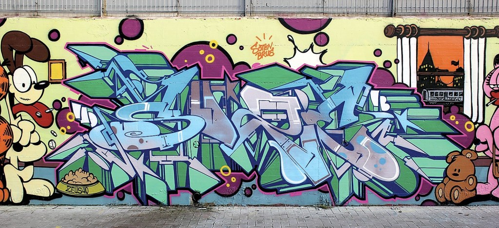 Quant aux murs, leur « valeur » dépend, en partie, de leur niveau de visibilité. Cela combine deux facteurs qui n’en font qu’un : son emplacement et sa surface. Les street artists peignent pour que leurs tags, leurs graffs, leurs fresques, soient vus et reconnus par le plus grand nombre possible de personnes. Cette assertion, qui semble une évidence, sans être fausse n’est pas vraiment vraie ! La réalité est que les graffeurs veulent être vus par d’autres graffeurs, d’autres crews. Les graffeurs d’un territoire donné connaissent l’ensemble des murs et à qui ils « appartiennent ». Ces murs sont observés pour voir si les graffs ont été toyés ou si d’autres crews ont recouvert les œuvres. Ce qui est représenté est directement destiné aux graffeurs des autres crews. De la même manière, le lettrage est un exercice de style dont les performances sont classées, du plus simple au plus complexe. Il en est de même des personnages. Aussi ne faut-il pas s’étonner de voir le long des routes par exemple, des graffs qui pour le commun des mortels n’ont pas de sens. Ils sont tous formés sur le modèle étatsunien de trois lettres et la sophistication du lettrage est telle qu’elle ne permet pas d’identifier les lettres. Les graffeurs des territoires voisins reconnaissent le nom du crew et son inscription a deux sens : soit le crew est passé par là et marque son passage et de facto son existence, soit c’est une revendication de la propriété du mur sur lequel est peint le graff. En résumé, les milliers de graffs ne sont pas « reconnus » par les badauds pour la simple raison qu’ils ne leur sont pas destinés. Ils participent au « game » dont ils ne constituent qu’une partie.