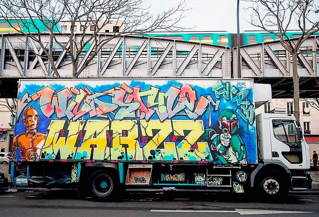 Un crew a, pour peindre, besoin de supports à sa peinture et ces supports sont le plus souvent des murs (les « roulants » -les trains, les métros, les bus etc.- sont des supports recherchés par ailleurs). La hiérarchisation des supports est assez complexe pour le commun des mortels. Taguer un « roulant » est d’abord un défi car il faut pénétrer dans les garages surveillés par des vigiles, des caméras, des chiens. En fonction du risque, les roulants sont classés. En bas du classement, les « proies » faciles (les camions garés la nuit dans une rue par exemple). En milieu de classement, les « cibles » surveillées telles que les trains de marchandise, les métros). Le graal est de graffer un train prestigieux comme l’Eurostar ou le Thalys. Les « roulants » permettent de faire voyager gratos son blaze ou son graff. En mixant les deux critères, un graffeur peut se faire une belle réputation en taguant un train en Russie, par exemple. Le dernier critère, et ce n’est pas le moins important est la qualité du graff. Bref, en croisant tout cela il est aisé de comprendre que peindre un superbe graff sur un « grand train » dans un pays où cet exercice est très sévèrement puni est le couronnement d’une carrière ! Une sorte d’apothéose. Un Austerlitz. Inutile d’ajouter que les terrains de jeu sont nombreux : le monde de manque pas de régimes autoritaires et de dictatures !