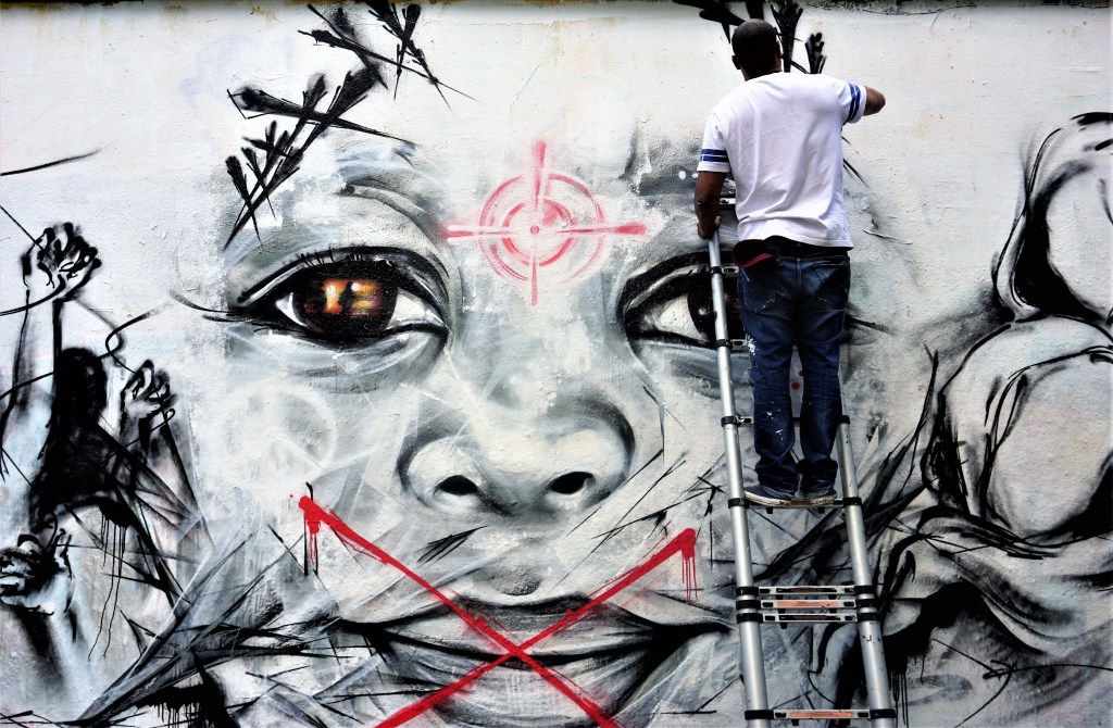 Les murs sont la grande affaire des crews, leur conquête, leur appropriation, leur conservation. Ils étaient et ils demeurent un enjeu fondamental du « game »[1]. Pourtant, le développement des réseaux sociaux comme Facebook et Instagram change, un peu, la donne. En effet, quand un crew a le projet de peindre une grande fresque, il le fait savoir sur les réseaux sociaux. La presse spécialisée suit « l’événement » et de nombreux aficionados filment et photographient les artistes en train de peindre. Ces images grâce aux smartphones de certains sont mises en ligne très rapidement et parfois en direct. Ces clichés, ces films, sont « likés » aussi rapidement par les amateurs de street art et « partagés ». Le nombre de likes et de partages est devenu une manière de mesurer l’impact de la fresque. La diffusion des images relayée par les partages assurent une publicité quasi immédiate des réalisations.