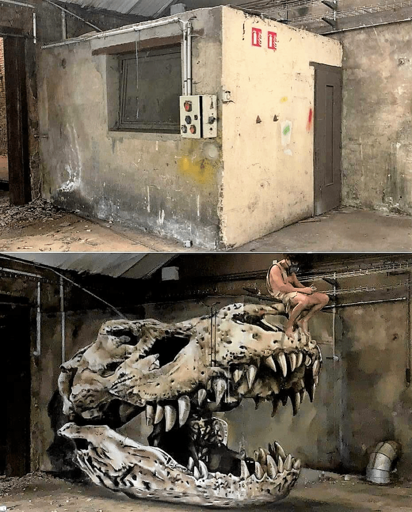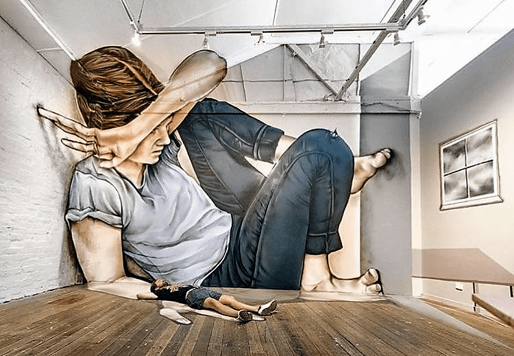 Je viens de comprendre, il était temps, que le street art est traversé par un puissant mouvement interne : la trompe-l ’-œil-mania. Pour donner une idée du phénomène, prenons l’exemple du site www.trompe-l-oeil.info. On y découvre à ce jour 12 000 photographies de murs et façades et 79 000 photographies de trompe l’œil. Une mode qui se répand à la vitesse des ondes électriques d’Internet et gagne tous les continents.