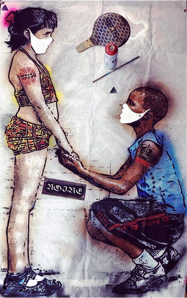 Aujourd’hui, tout va bien. Le street art, l’art dans la rue, va pas bien, lui. Les murs sont fermés jusqu’à nouvel ordre. Un peu partout dans le monde. Et tous les jours un peu plus. Alors, on ressort sur Instagram et Facebook, ce qu’on a fait juste avant ou des vieilleries ou des « fresques clandestines », peintes le plus souvent sur un mur en déshérence en plein bled, là où personne ne va. La nature ayant horreur du vide, on met un peu de tout sur les réseaux sociaux : des infos, des photographies d’art, des clichés « vu de ma fenêtre », des blagues selon l’adage « il faut rire de tout… » et dans cet inventaire à la Prévert, des œuvres, belles et émouvantes
