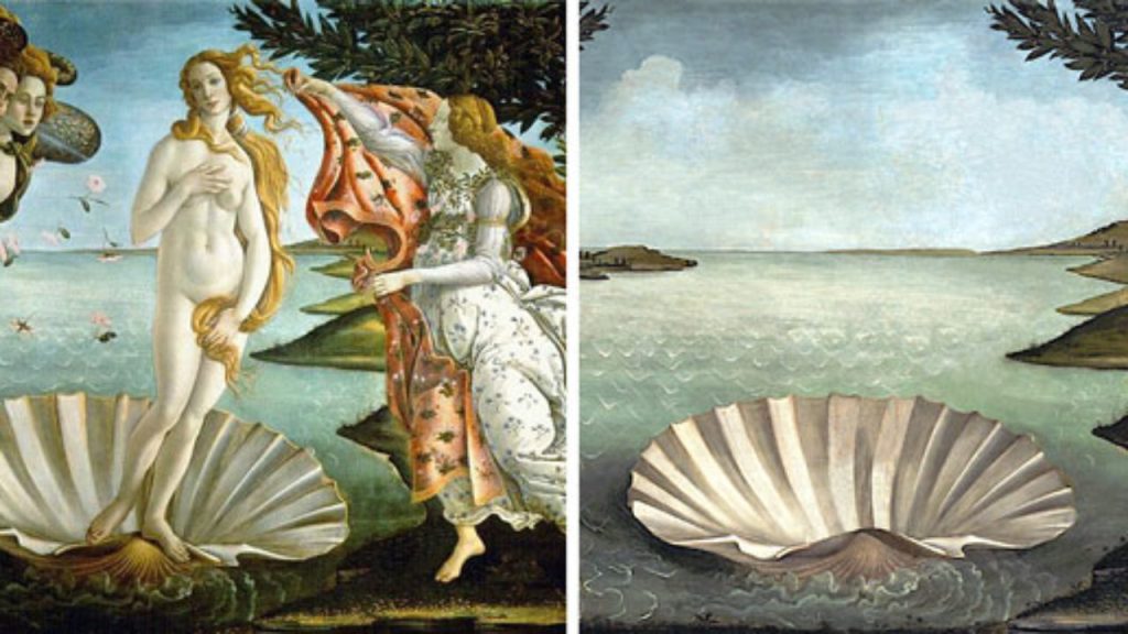 Entre les personnages et les relations avec le décor. Je veux dire par là qu’il est bien difficile d’isoler Vénus de sa coquille ou Diego Vélasquez qui peint les Ménines de l’énigmatique grande pièce du palais du roi Philippe IV. La séparation des personnages du décor introduit un mystère, où sont les personnages. À la lumière du contexte actuel, nous induisons qu’ils sont morts. Sans eux, le monde n’a pas de sens et que le plus important, sans que nous en prenions toujours conscience, ce sont les Hommes.