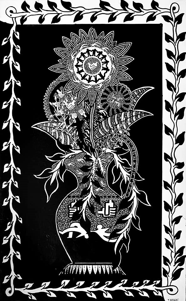 Le second pôle est formé par des dessins et des fresques qui, à l’opposé des dessins « politiques », accumulent les motifs jouant sur l’accumulation des objets. Là, la beauté de la forme, prime sur le message, sans en être totalement absent.