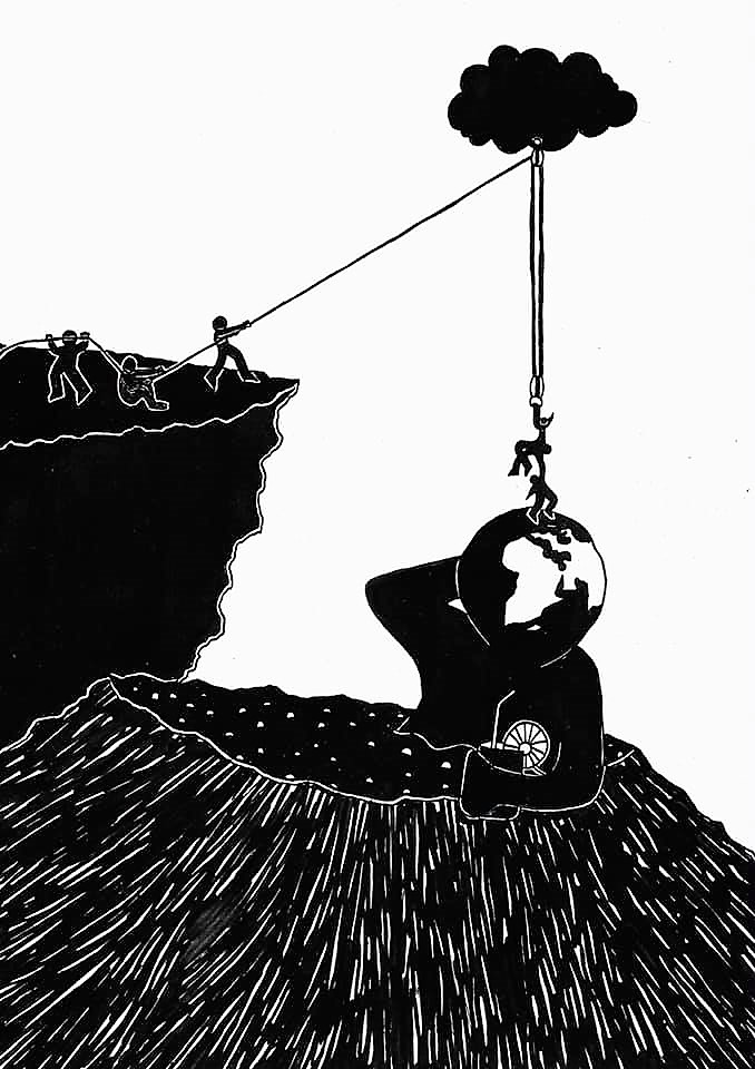Parisien mais confiné, c’est par Internet que je l’ai interrogé sur son travail et ses influences. Dans sa réponse Théo donne des clés pour saisir son projet artistique ; « A travers mes dessins, je fais des constats assez généraux sur l’état de la planète et le rapport que l’humain entretient avec elle. C’est catastrophique ! Alors je l’illustre. Peut-être que je parle de moi à travers tout ça mais ce n’est absolument pas l’objectif premier. Après, mes inquiétudes et mes peurs sont certainement visibles mais j’imagine que c’est logique et normal, l’artiste crée et on met tous du sien dans nos créations. »