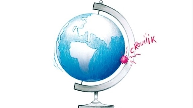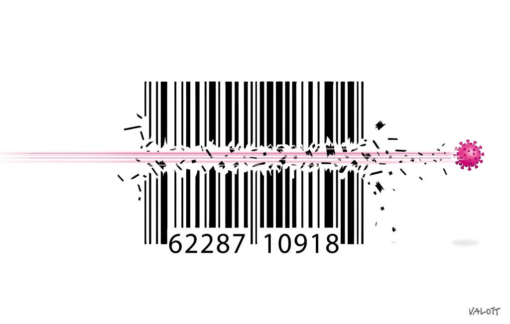 Si certains dessins sont drôles (j’avoue que la caricature du président brésilien Bolsonaro, tragique Père Ubu, est d’un burlesque assumé qui me ravit), d’autres prémonitoires (je pense à la photo de classe de l’année de grâce 2020 et à ce globe terrestre dont la rotation est coincée par un minuscule virus et à ce code-barre, symbole du commerce, fracassé par un virus).