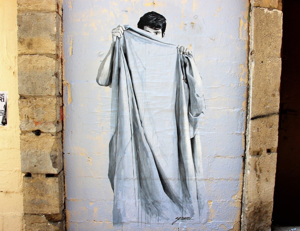 La dissimulation partielle de ses traits par un occultant est un ressort pour inviter le regardeur à passer de l’identité particulière de l’artiste à « l’humaine condition ». En réduisant l’image de ses traits, il élargit sa condition à notre condition.