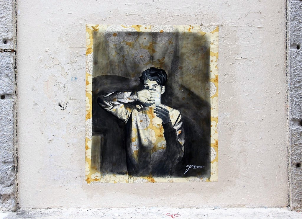 Au premier regard, avec la redoutable clarté de l’évidence, c’est l’idée qui s’impose au regardeur qui observe avec attention les œuvres d’Alban Rotival aka Agrume. La raison en est simple : ces œuvres sont des autoportraits. Des autoportraits bien particuliers qui rompent avec la tradition de l’autoportrait classique.
