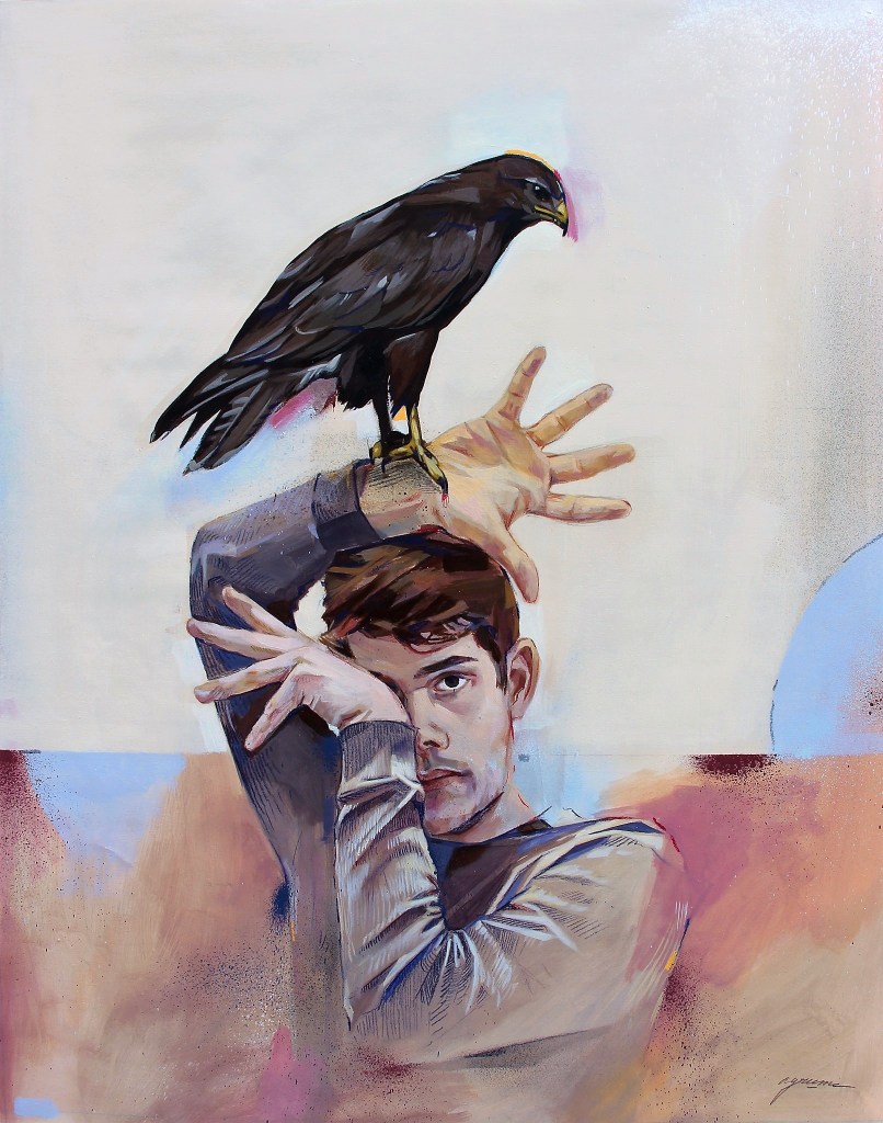 Bien sûr, les images créées par Agrume parlent de lui. Il le confirme dans un échange épistolaire que nous avons eu récemment : « La plupart de mes portraits sont pour l’instant des autoportraits, travaillant à partir de photos, le modèle le plus accessible reste moi-même. Ainsi j’explore un travail de mise en scène pour m’approcher le plus possible de l’idée que j’ai en tête. Aussi la création de mes images est intimement liée à ma personnalité, à mes ressentis ainsi qu’à mon vécu et mes souvenirs. L’utilisation de ma propre image s’accorde alors parfaitement avec mon discours. »