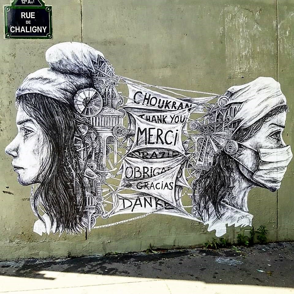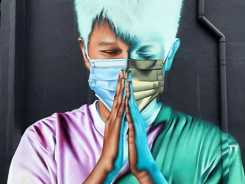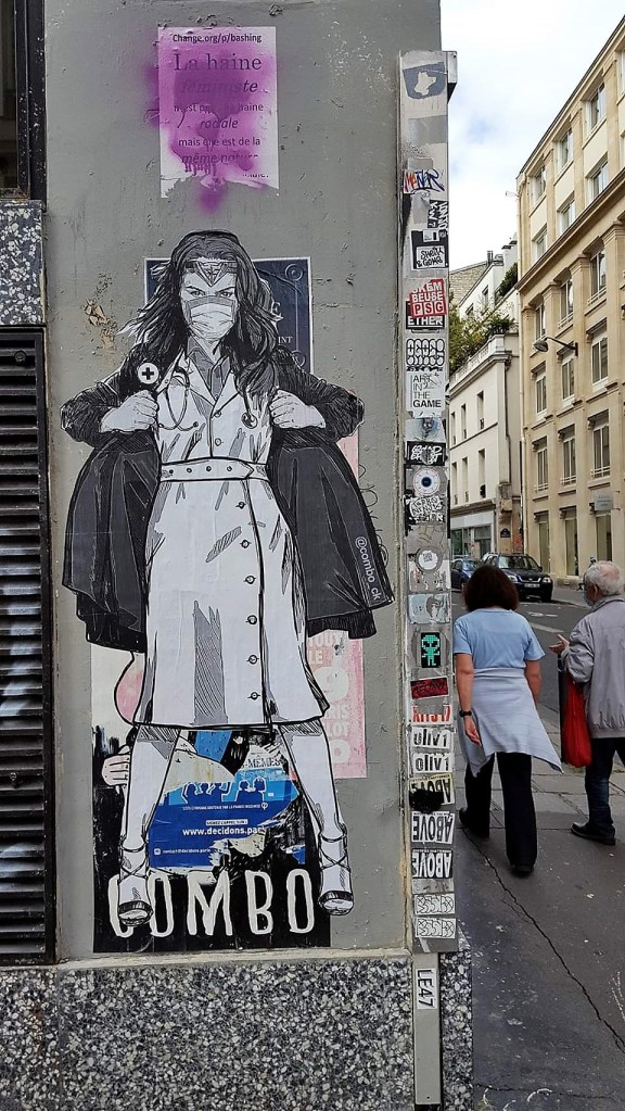 Si, en France, le rituel de l’applaudissement des soignants à 20 heures a, on ne sait pour quelles raisons, disparu, un peu partout dans le monde les personnels de santé ont été honorés. Honorés par les moyens classiques de distinction (reconnaissance par les élus de la nation, primes, médailles etc.) mais aussi par la création de fresques illustrant les différentes catégories de soignants (médecins, chirurgiens, infirmières etc.)