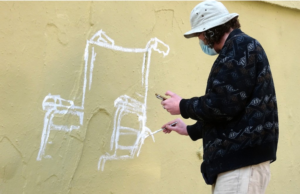 Assez bizarrement le blaze et l’identité visuelle de notre artiste sont le fruit des circonstances. Dans un entretien Kraken revient sur sa rencontre avec le monstre : « L’idée m’est venue un peu par hasard ; l’effet abstrait des longs tentacules me plaisait. Et puis c’est l’animal de la Mafia. J’aime bien les peindre au-dessus des banques ou des bijoutiers, comme un clin d’œil ! »
