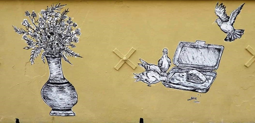 Kraken nous donne à voir ses rires, ses sourires, ses craintes, ses peurs. Nous partageons avec lui les ridicules qu’il dénonce. Avec lui, nous sourions de ce qui nous effraie, la maladie, la dépendance et aussi la vieillesse et son naufrage. La petite vie, dans un petit appart HLM, une retraite pour survivre, une existence rythmée par le marché le jeudi et le dimanche, les commissions au supermarché avec le caddie qu’on aura bien du mal à trainer, le petit bonheur d’un bouquet de fleurs acheté au marché qu’on mettra dans le vase que l’oncle du mari décédé a offert pour le mariage, un beau vase en imitation cristal posé sur la toile cirée de la salle à manger où plus personne ne mange.