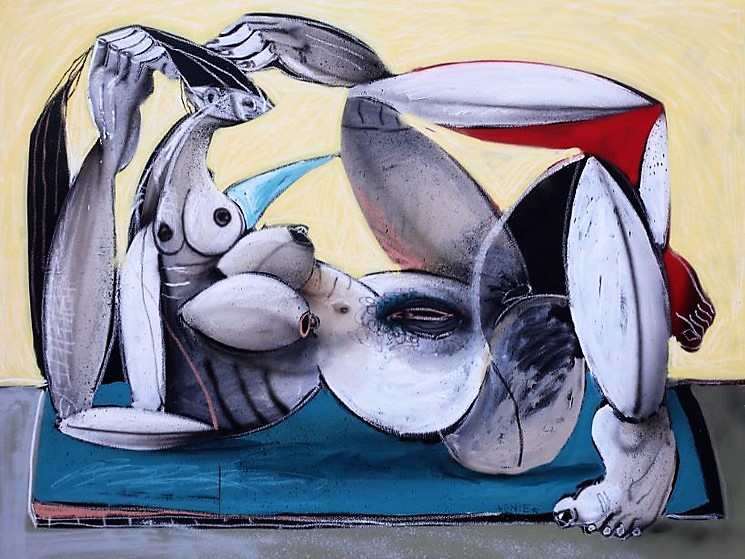 « La liberté » d’Onie Jackson est un message crypté destiné à ceux qui possèdent suffisamment les référents de l’histoire de l’art pour comprendre. Il « emprunte » à Delacroix la figure de la liberté, femme puissante et courageuse qui ouvre la voie et à Picasso la forme, réminiscence de la toile iconique du maître du cubisme.