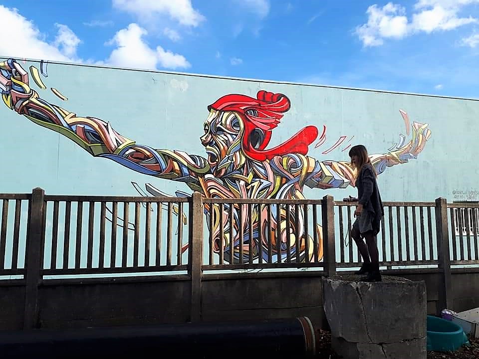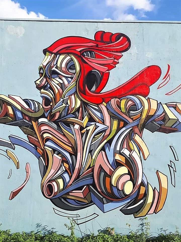 Bref, ces considérations valent également pour les street artistes. Il y a des artisans et des artistes. Curieusement, comme un retour aux ateliers d’antan, les muralistes d’aujourd’hui sont en fait des équipes dont les membres sont spécialisés. Les « murals » sont attribués à l’artiste créateur du projet et inventeur des formes. Incontestablement, Marchal Shaka est un artiste. La découverte de son travail a été une belle rencontre[1]. Une rencontre avec des œuvres qui surprennent.