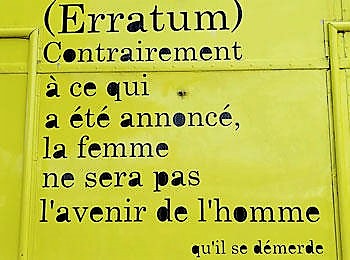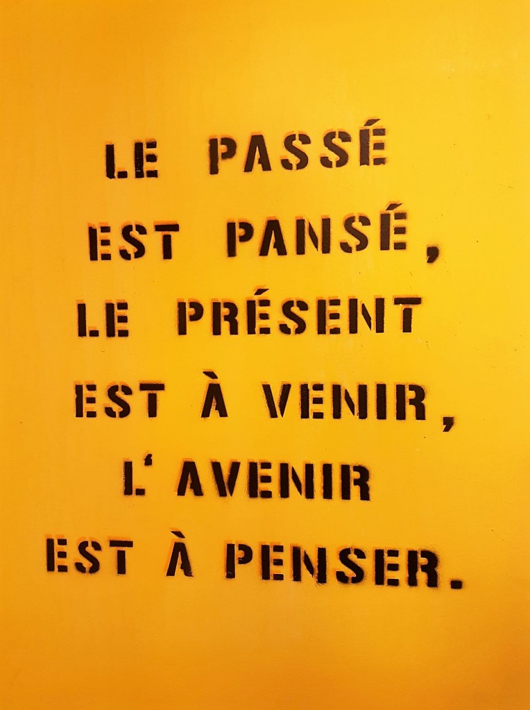 J’ai tenté d’en cerner les thèmes majeurs. J’en vois 5 : l’humour, la poésie, la politique, l’insolite et les citations littéraires. Catégorisation arbitraire évidemment car les thèmes souvent se chevauchent. L’humour est parfois politique et la politique drôle. L’imagination est libérée par la modestie des moyens. Un court texte imprimé sur une feuille A4 ou A3, un peu de colle, un coup de pinceau et voilà l’affaire. Un carton un peu fort, un cutter, et le tour est joué. Vous pouvez taguer les murs et les trottoirs. Moyens dérisoires qui permettent à tout un chacun de dire ce qu’il a sur le cœur. La rue est devenue (si les services de la propreté lui laissent vie) un vaste forum, une agora. Un espace d’échange dont les messages photographiés et postés sur les réseaux sociaux sont vus et lus par des milliers de personnes.