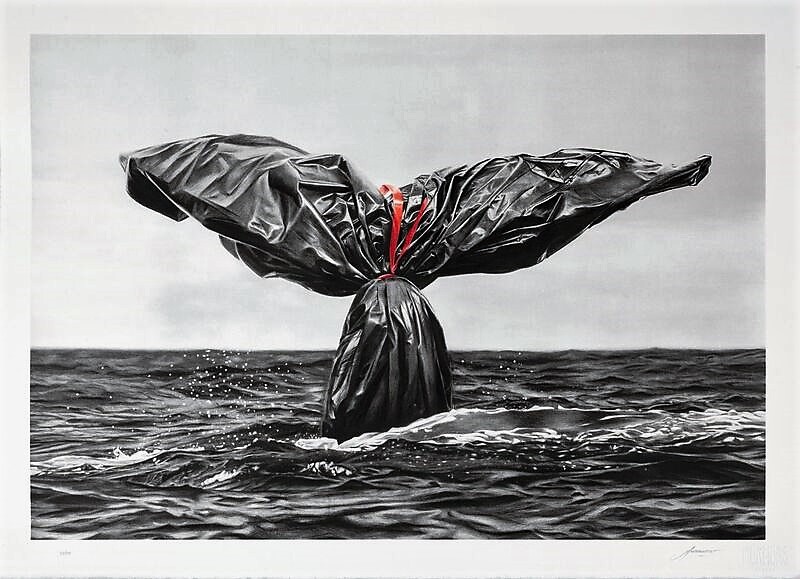 Murmure par cette œuvre prolonge le thème de son exposition à la galerie LG à Paris en 2020. Elle était titrée « garb-Age », « garb » comme costume, « garbage » comme ordures. Prolongement aussi de la forme : un sujet central, une quasi absence de décor, un message écologique immédiatement lisible. Sans être dans l’excès du mouvement « Extinction rébellion » qui a l’occasion de la COP 26 a collé des milliers d’affiches annonçant l’apocalypse pour, non pas demain, mais pour aujourd’hui (Apocalypse now, l’horreur est pour demain », « Notre futur est apocalyptique »), Murmure en créant des images fortes aide à la prise de conscience des populations, créant les conditions de l’action militante.