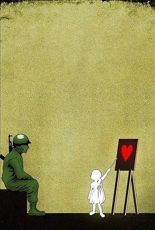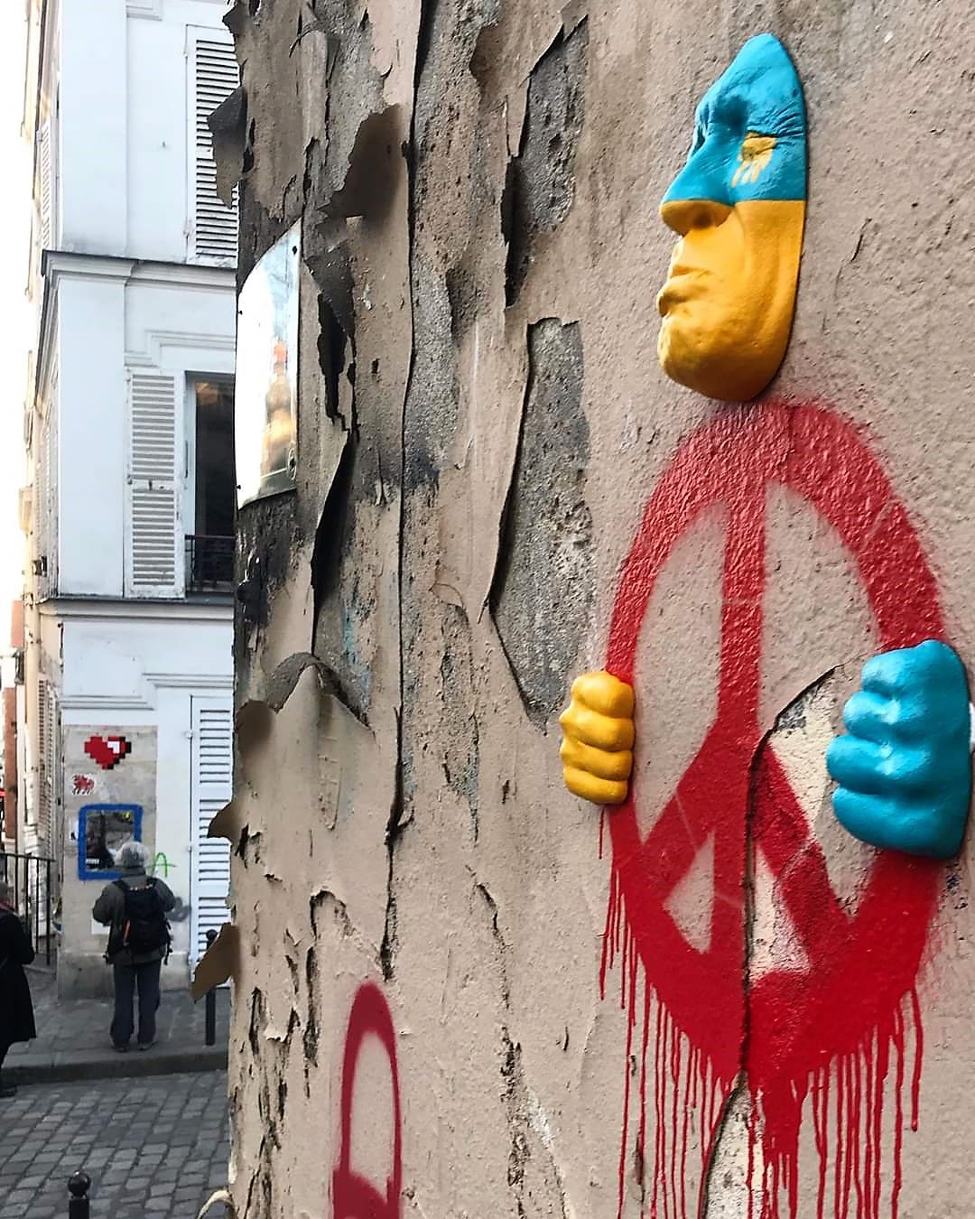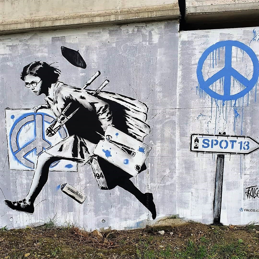 Outre l’intérêt de constater que les symboles ont une histoire, que leur signification varie avec le temps et les sociétés, les symboles peints sur les murs de nos villes disent en creux le désespoir des jeunes adultes confrontés comme nous le sommes à l’impensable et qui, dans cette horreur, ne peuvent pour se protéger qu’élaborer des solutions qui relèvent de l’utopie. La violence de la guerre, la mort des innocents sont au sens littéral impensable. C’est la raison pour laquelle, les jeunes et parmi eux les jeunes street artistes, recourent à une symbolique réparatrice.