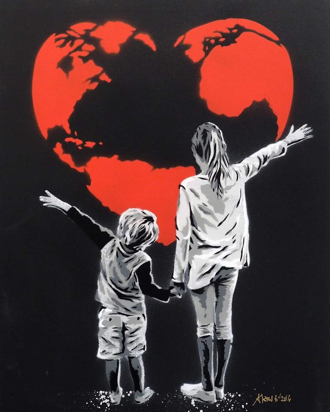 A la réflexion, je me demande si les jeunes street artistes sont aussi éloignés que cela de la culture hippie. En effet, dans le même mouvement, souvent associés aux symboles de la paix, nous trouvons des milliers de cœurs symbolisant l’amour. Une demande de paix et une résolution du conflit par l’amour réciproque. Rien à voir avec la religion. Une version revue et corrigée des idéaux libertaires. Ce n’est pas moi qui reprocherais aux jeunes d’être utopistes et de croire que l’amour de l’autre suffit à créer un monde meilleur !