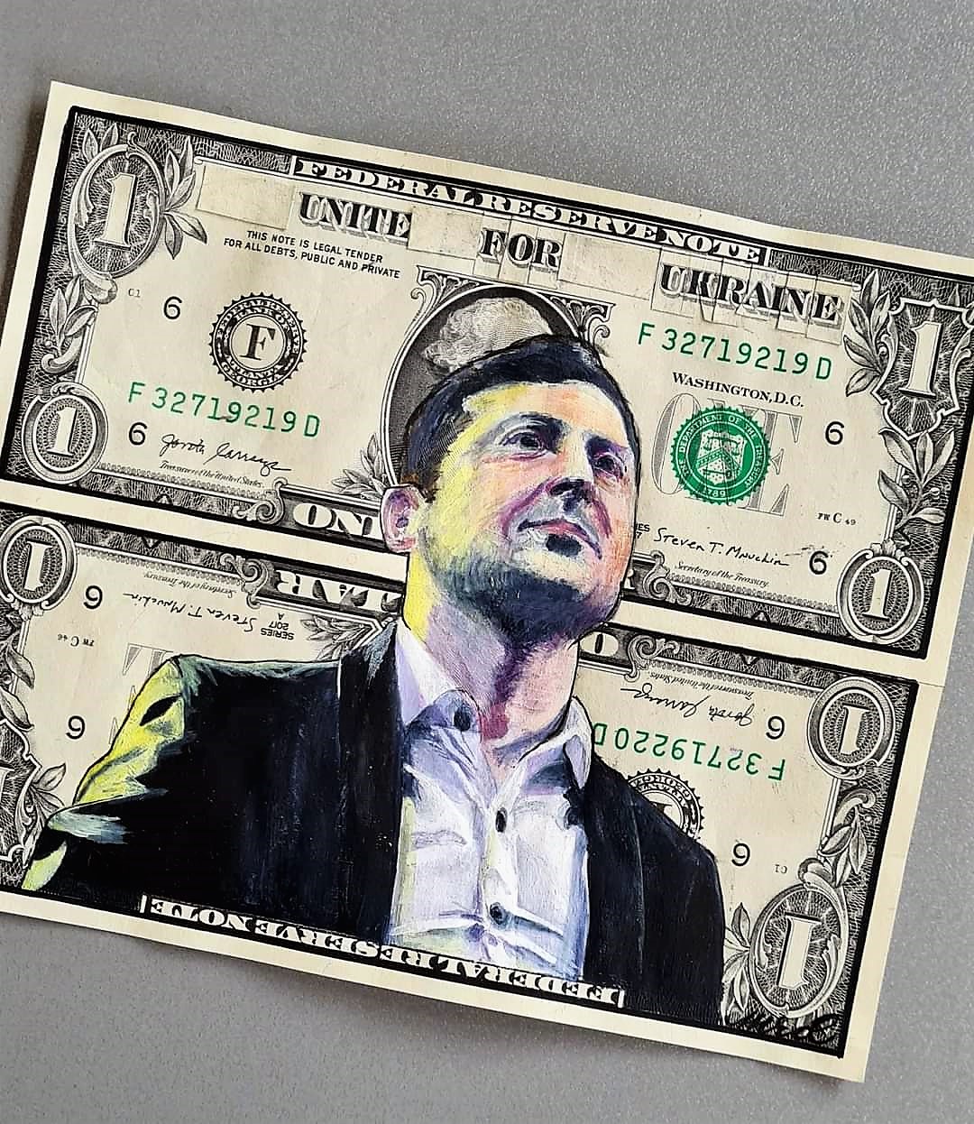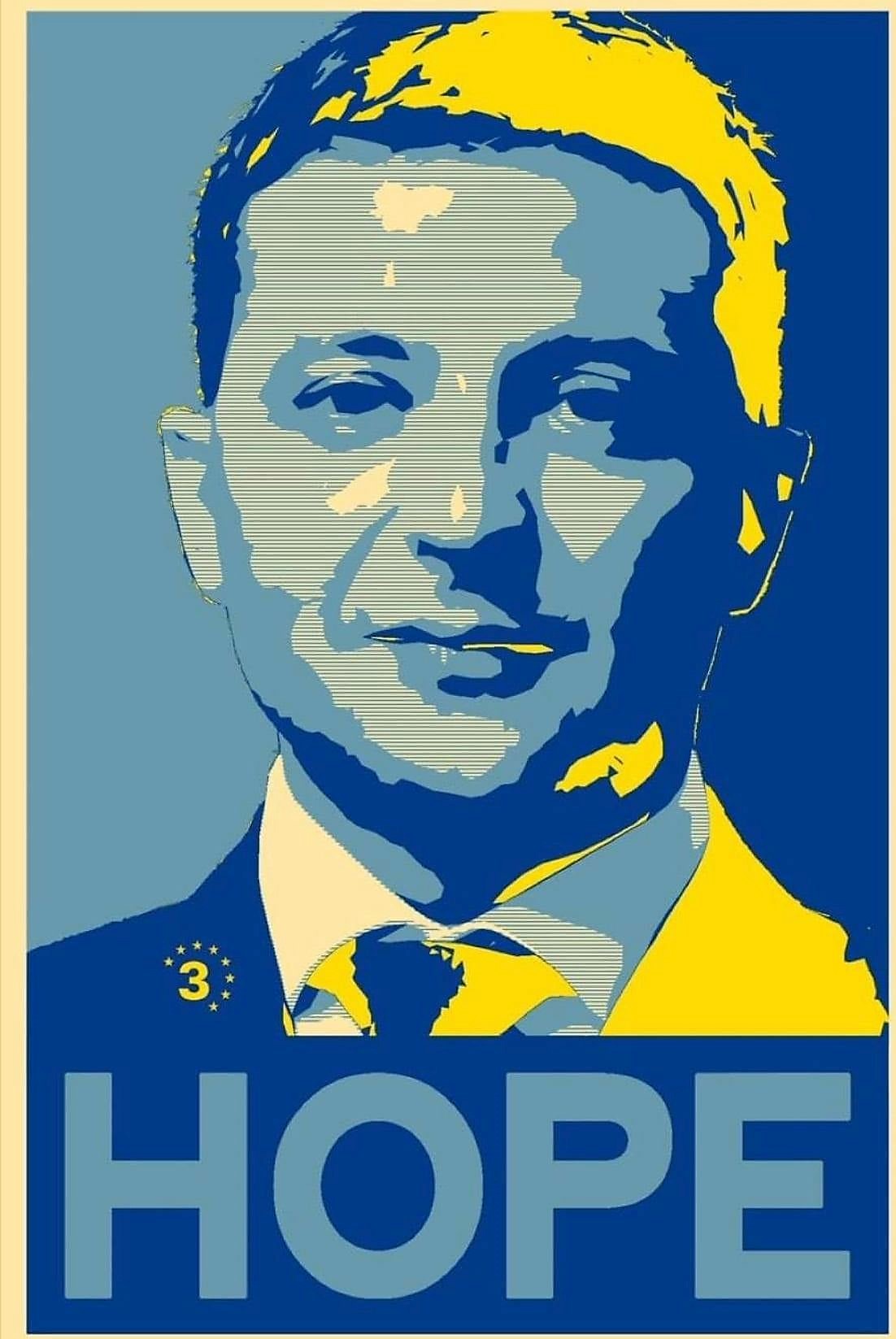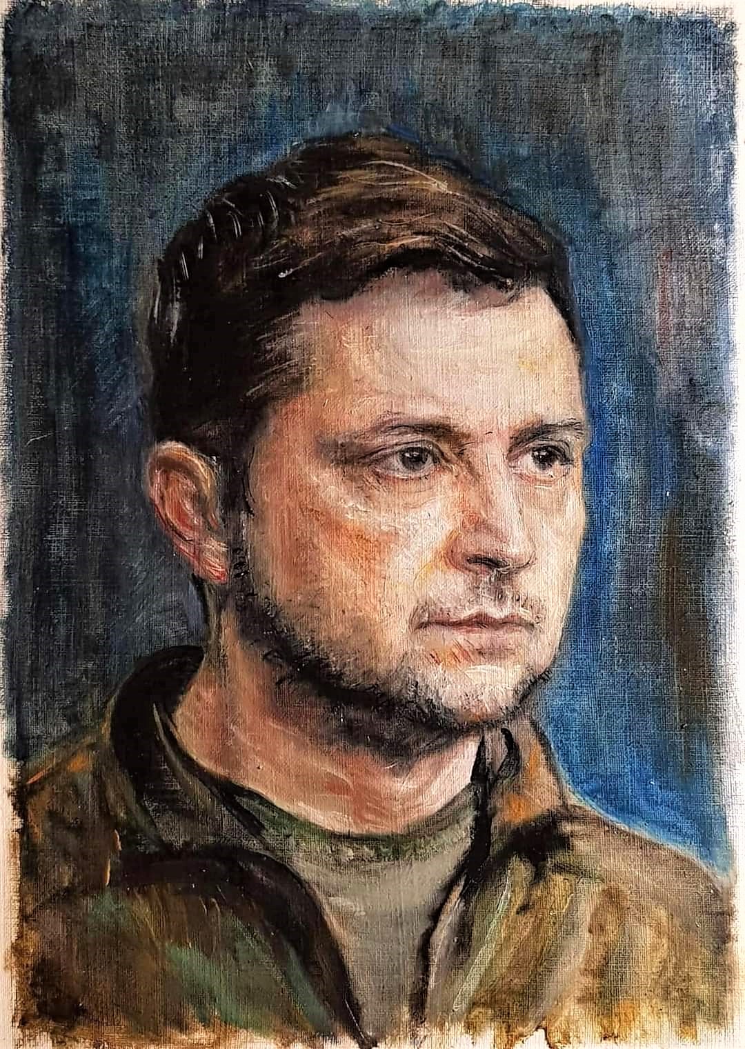 Les artistes ont peint de superbes portraits de Zelensky. Le président est représenté de face, de trois-quarts, en couleurs, en noir et blanc, le plus souvent en bleu et jaune. Une affiche est un plagiat de l’affiche de Shepard Fairey représentant Obama. La comparaison est implicite. Par ailleurs, il incarne l’espoir, celui du peuple ukrainien qui depuis la Révolution orange veut rejoindre l’Occident et ses alliances.