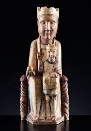 C’est dans ce riche et polysémique réseau de référents qu’à l’époque romane, entre le 12ème et le 13ème siècle, peintres et sculpteurs vont « inventer » la Vierge à l’enfant. Une Vierge, assise sur un trône, et tenant un Jésus adulte sur les genoux. Des deux personnages, Vierge et enfant Jésus, le personnage important pour les croyants de l’époque est Jésus et non sa mère dont on ne sait rien. Jésus, le Messie attendu par le peuple d’Israël, Dieu fait homme, mort et ressuscité est le fondement doctrinal du christianisme.
