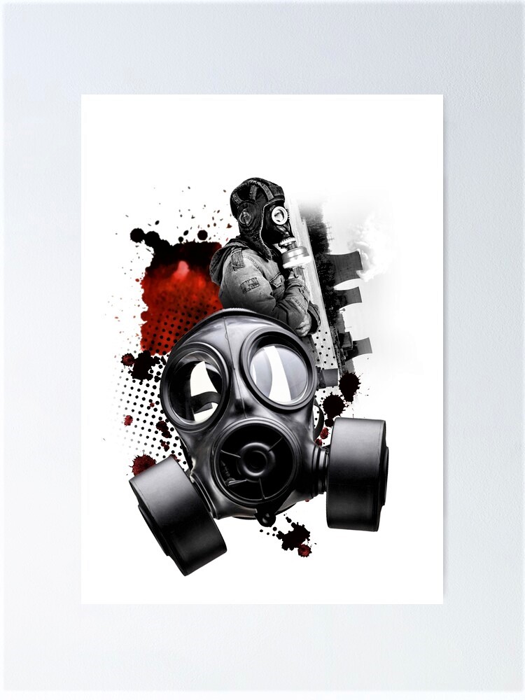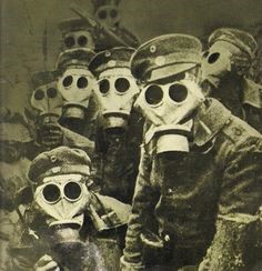 L’idée du masque a été conservée, mais de fil en aiguille, un glissement s’est effectué. De l’air qui est un gaz à masque à gaz, il n’y avait qu’un pas que des légions d’artistes franchirent. Les représentations de masques à gaz modernes n’eurent guère de succès. Lui fut préférée la représentation des masques à gaz portés par les soldats de la Première guerre mondiale.
