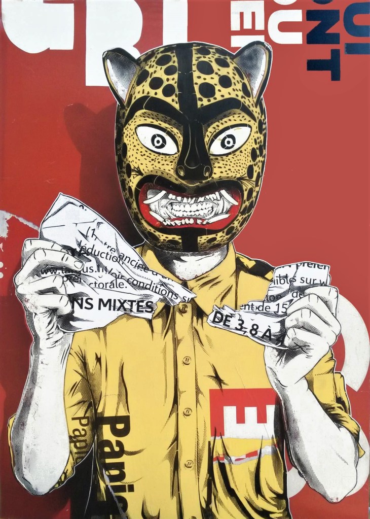 De là, peut-être, mon intérêt pour les masques. Et mes interrogations sur la représentation des masques dans la peinture et le street art en particulier. Street art et peinture de chevalet sont cousins issus de germains. Ce qui vaut pour l’un vaut également pour l’autre. Certes des différences existent (dimension des surfaces peintes, nature des supports, outils scripteurs etc.), mais les street artistes sont des peintres et leur contester cette identité serait une manière de dévaloriser leurs œuvres.