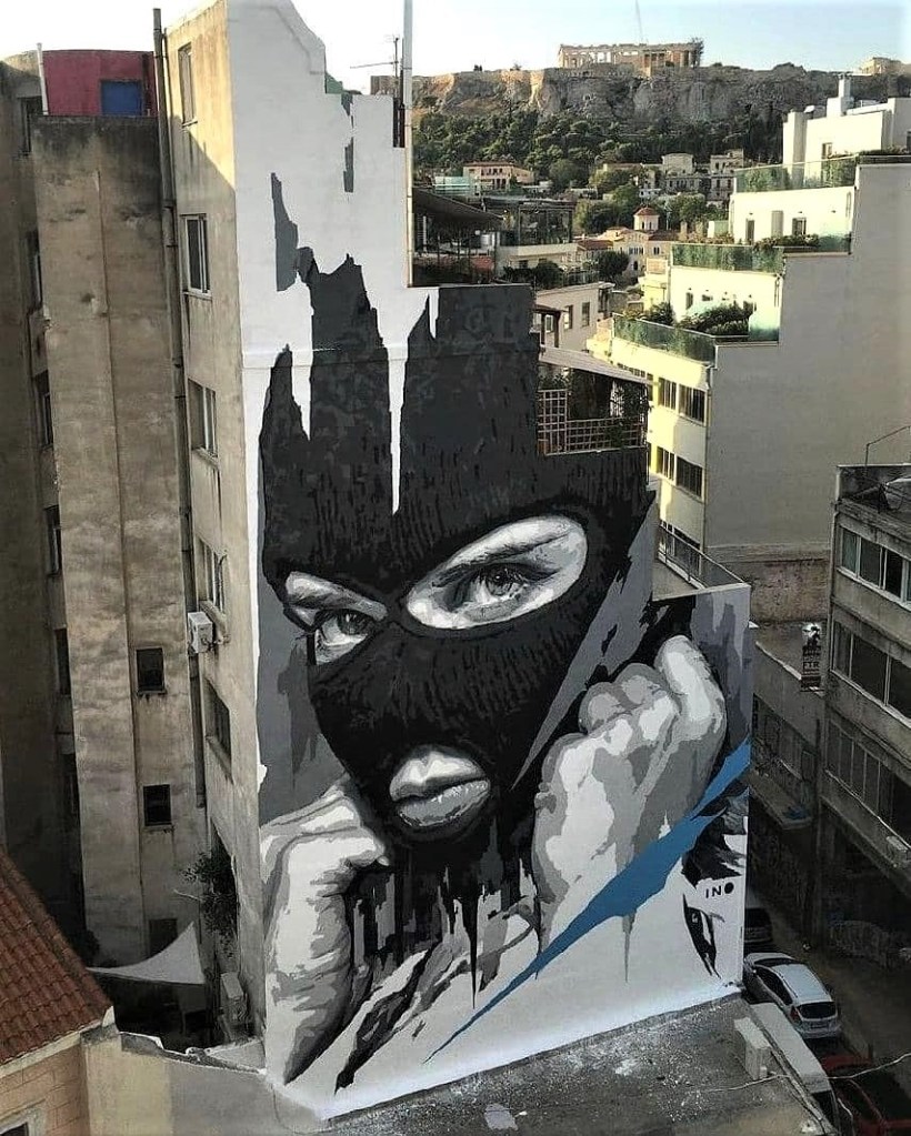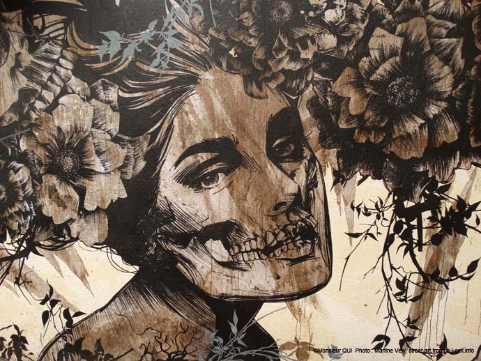 La signification est « stable » et constante : notre vraie nature est cachée derrière des apparences. Le visage que nous donnons à voir est un masque qui cache notre vérité profonde. L’idée n’est pas nouvelle et sa représentation plastique non plus. Elle a été moultes fois reprise et développée dans des œuvres de street art pour plusieurs raisons : elle introduit dans le portrait l’aura du mystère c’est-à-dire, une dimension supplémentaire dans la fabrication de l’imaginaire, elle questionne sur la peinture qui révèle ce qui est caché . Plus prosaïquement peut-être, la juxtaposition des deux plans (extérieur/intérieur) ouvre la voie à un nombre infini d’images potentielles d’une grande richesse graphique.