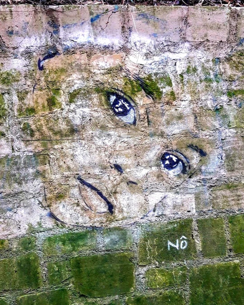 Ceci étant, le mur n’est pas qu’une somme de contraintes techniques pour les artistes, c’est aussi un puissant stimulant qui invite à la création. J’en veux pour preuve, ces œuvres atypiques qui semblent « sortir » du mur. Dit autrement, des images semblent prendre forme sur la surface du mur. Comme le mince filet d’eau qui sourd d’un sol caillouteux, des portraits « font surface » et laissent sur le mur une fragile trace. Cet effet poétique est souvent la conséquence de l’effacement de l’œuvre causé par la pluie et la dégradation naturelle des pigments de la peinture. J’avoue être particulièrement sensible à ces images qui se dégradent et finalement, disparaissent. J’y vois une allégorie de la fuite du temps et du caractère éphémère des œuvres humaines. L’art créé pour combattre l’inéluctabilité de la mort est, lui aussi, mortel.