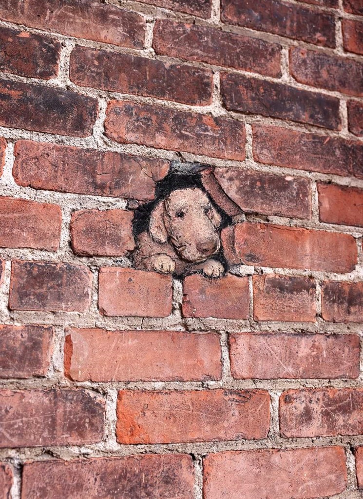 D’autres œuvres, et ce sont les plus nombreuses, « jouent » avec le mur. Une actualisation amusante et souvent poétique qui trouve sa source dans la lointaine antiquité. Pensons à ces patriciens romains qui faisaient peindre sur les murs de leurs villas des fenêtres ouvertes sur la campagne environnante. Dans un registre littéraire, pensons au « Passe-muraille » de Marcel Aymé. Le jeu consiste à donner l’illusion qu’un homme, une femme, un enfant, un animal entre ou sort d’un mur. Nous sommes dans le domaine de l’illusion, comme le musée Grévin. Un divertissement. La condition pour que fonctionne l’illusion est le recours à une représentation réaliste voire hyperréaliste. Bref, un spectacle dont l’objectif explicite est de susciter l’étonnement.