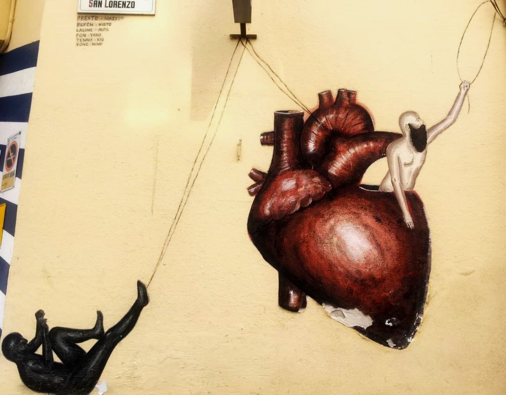 Il n’est nul besoin de recourir, pour expliquer ce glissement sémantique, aux fonctions que les Anciens ont donné au cœur. Les raisons en sont simples et limpides. Par contre, il convient de réfléchir à la relation faite par nombre de street artistes entre notre organe et la souffrance. J’y vois essentiellement deux raisons.