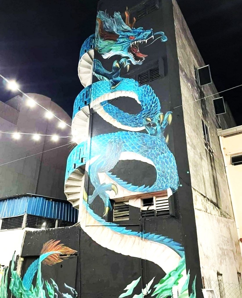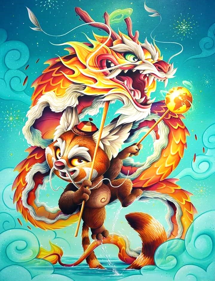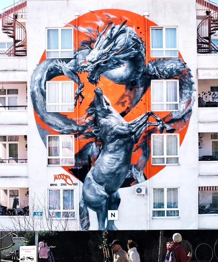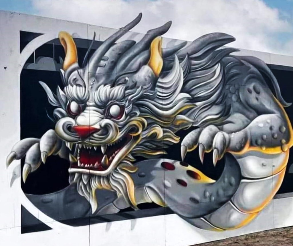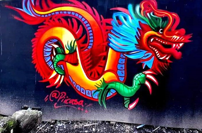 Les ailes des dragons asiatiques ont disparu alors qu’ils sont représentés non pas rampant sur le sol, mais en lévitation. Les dragons cracheurs de feu associés à la symbolique de la terre ont quasiment disparu de l’iconographie des street artistes contemporains.