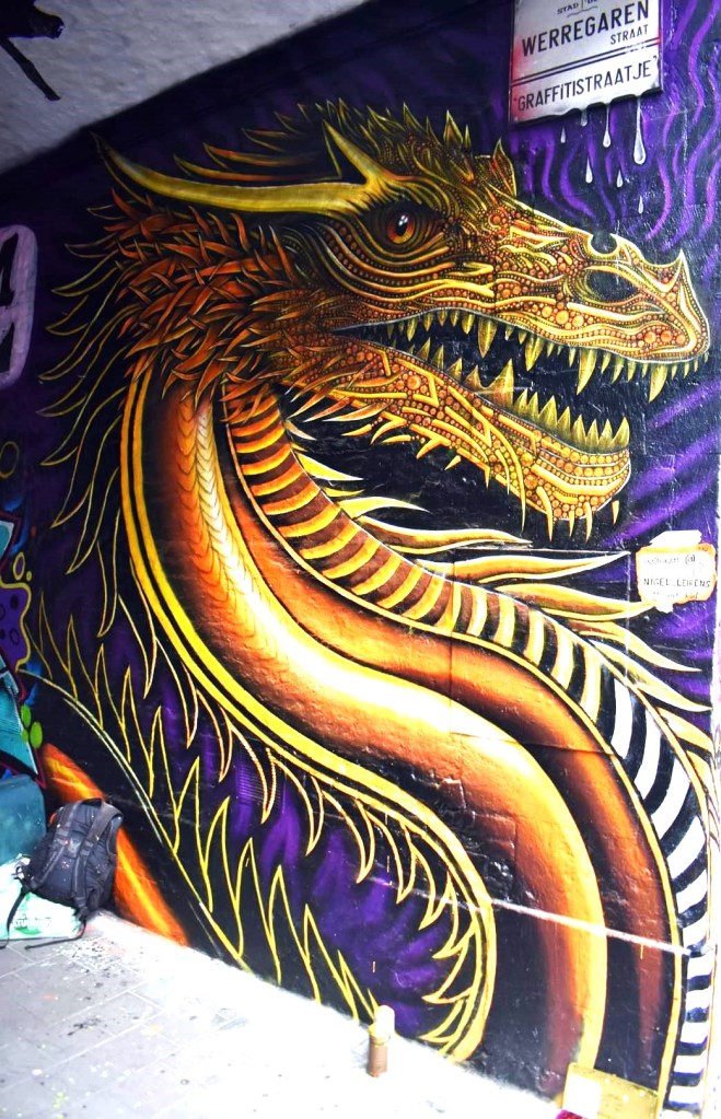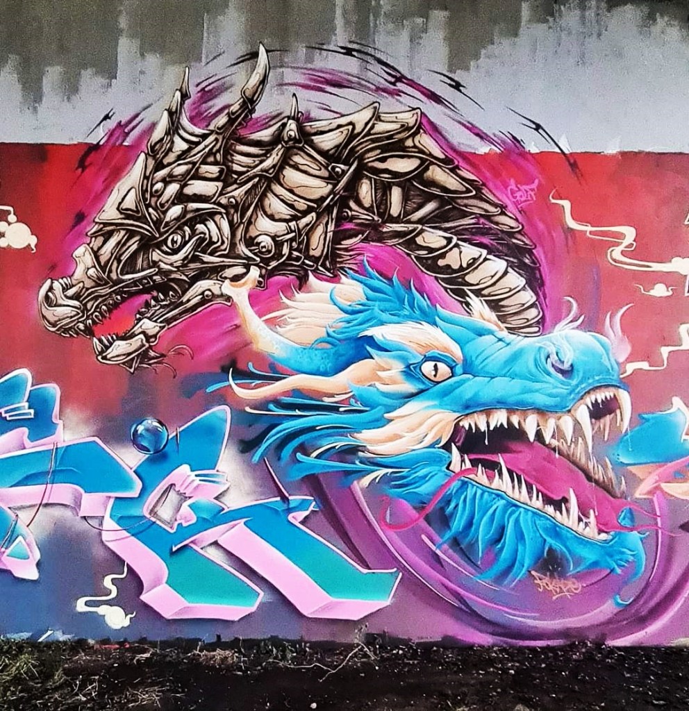 Mon sentiment est que les street artistes ont essentiellement puisé des images et des traits comportementaux des dragons dans leur culture, une culture centrée sur l’image. Dans un curieux syncrétisme, ils ont mélangé des caractères pour créer un nouveau monstre, à l’aspect effrayant, n’obéissant qu’à ses instincts, un animal dont le principal attribut est la force sauvage.