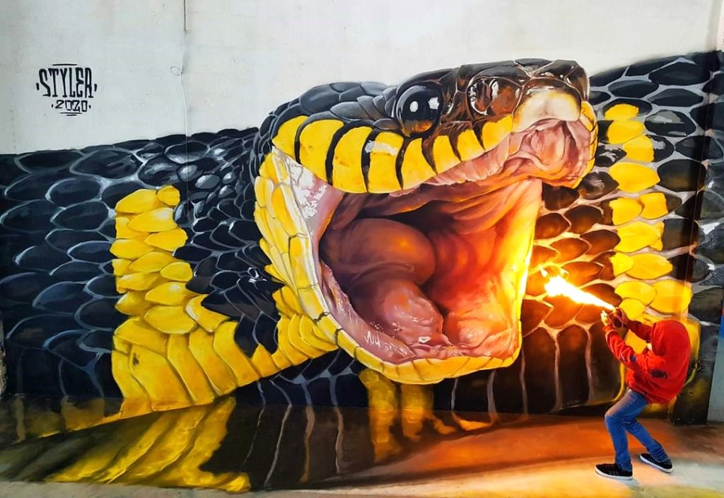 Remarque liminaire, les représentations de serpents dans les fresques de street art obéissent toujours à la volonté pour les artistes de susciter la peur.