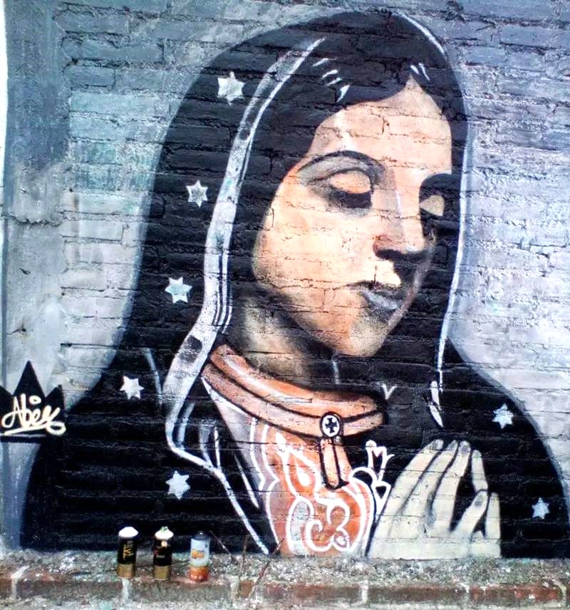 Comment ne pas voir dans le traitement des figures de la Vierge Marie et de Jésus par les street artistes une évidente opposition entre la Vierge de Miséricorde et le martyr de Jésus.