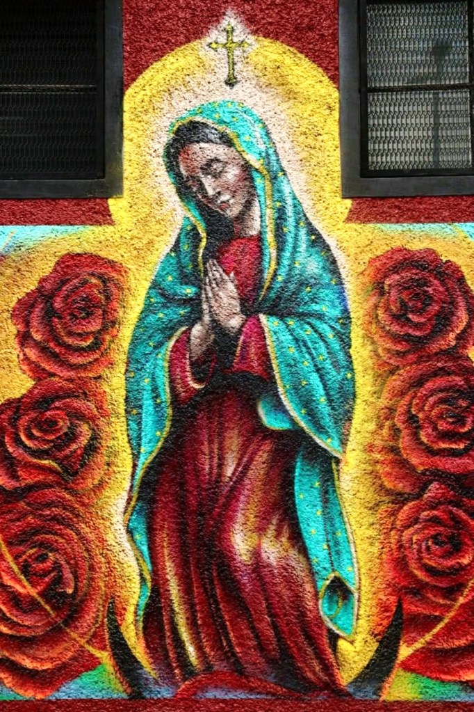 Remarquons que les fresques qui représentent Marie et Jésus sont peintes dans les pays profondément marqués par le catholicisme et qui ont gardé une forte pratique religieuse (Italie-en particulier la Sicile-l ‘Espagne, le Portugal, les pays d’Amérique latine etc.)