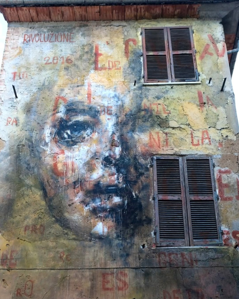 Les fresques de l’italien Alberto Ruce, par bien des côtés, ressemblent aux œuvres de La Rouille. Les œuvres de Ruce sont d’une rare sophistication graphique. On devine plus la matière qu’on ne la voit. Le trait est plus suggéré que peint, la représentation des couleurs du sujet échappe au Réel et les volumes sont rendus par un presque monochromatisme. Les œuvres sont comme des empreintes de visages, empreintes laissées par le temps assassin. L’exercice est assurément virtuose.