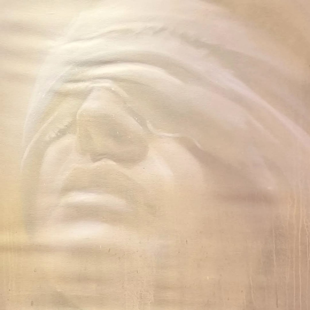 Le premier est La Rouille. Ses fresques, le plus souvent des portraits, peintes en urbex sont surprenantes. Sombres, graves, elles sont marquées par une évidente ambiguïté. Elles se présentent comme des œuvres usées par le temps et questionnent le regardeur. Les « traces » de peinture sont-elles ce qui témoignent d’une autre œuvre dans un processus de destruction ou l’œuvre représente-t-elle une forme qui émerge du mur. Tout concoure à donner l’illusion que l’image d’un être ayant habité la maison sort littéralement d’un mur pour accéder à une autre forme d’existence.