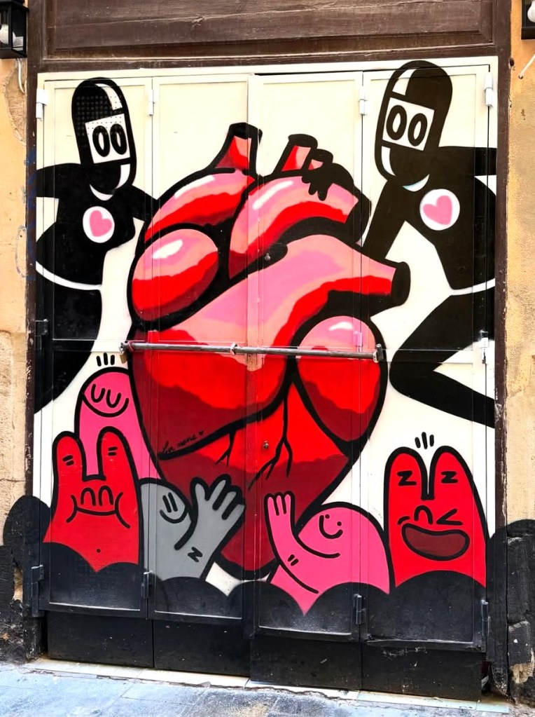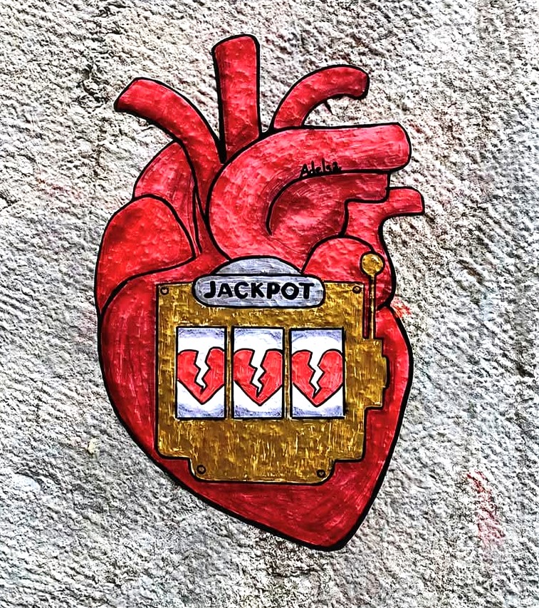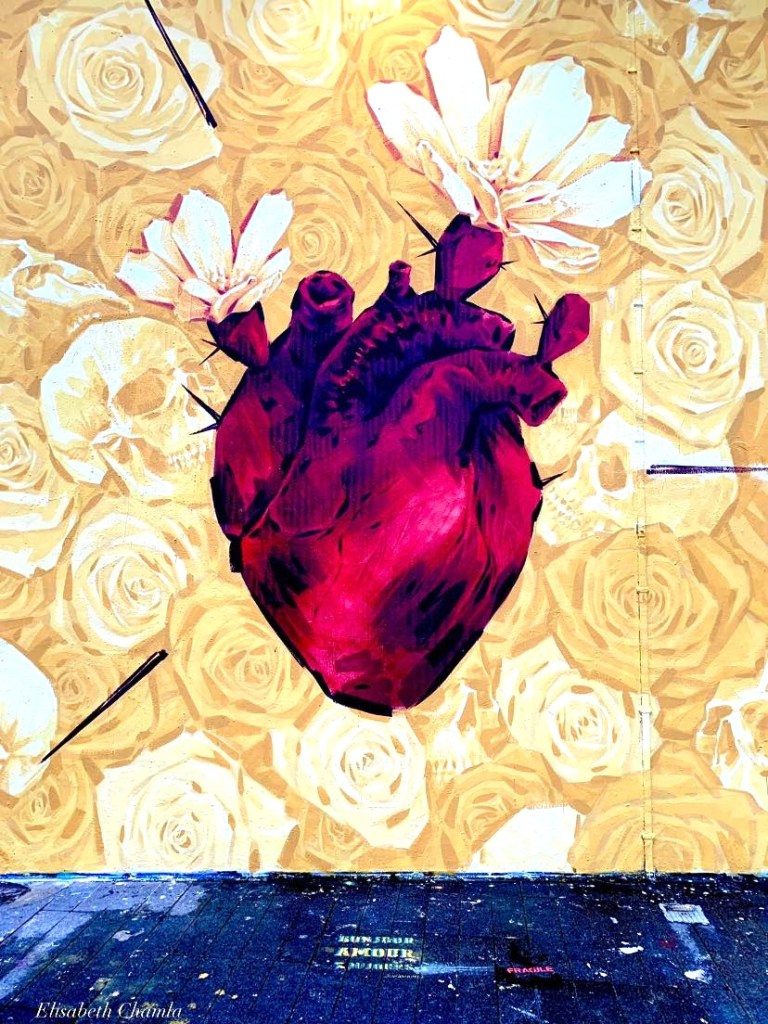 Dans une première chronique, je m’étais interrogé sur l’origine de la forme du cœur et comment la feuille de lierre vint à traduire le sentiment amoureux. Dans une seconde chronique, je notais que la forme désormais traditionnelle et universelle du cœur était en concurrence avec un cœur réplique d’un dessin quasi anatomique de notre organe. L’explication que je donnais alors était la nécessité pour les artistes de street art de rendre compte des états d’âme, et en particulier de traduire l’opposition entre le bonheur et le malheur. J’assimilais la représentation de notre organe au concept de souffrance. Je crains et j’en suis fort marri d’avoir fait fausse route.