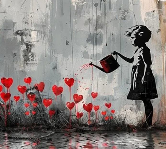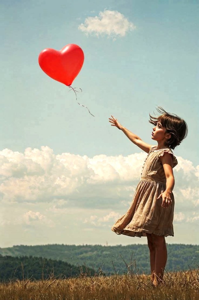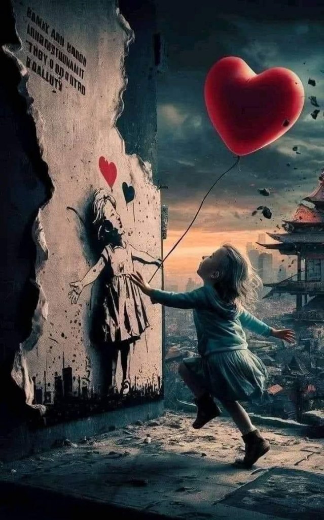 L’œuvre représente une petite fille en robe noire tendant la main vers un ballon rouge en forme de cœur qui s’envole. À côté de l’œuvre, l’artiste a écrit « There is always hope » (Il y a toujours de l’espoir). Trois couleurs seulement composent l’œuvre : le rouge, le noir et le blanc.