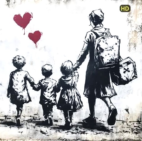 L’histoire du pochoir de Banksy est surprenante à plus d’un titre. En premier lieu, le dessin du pochoir devenu grâce aux médias et aux réseaux sociaux une icône, a été décliné à deux reprises par l’artiste. L’œuvre encadrée autodétruite est une interrogation sur le marché de l’art. La petite réfugiée syrienne est une œuvre humaniste et politique.