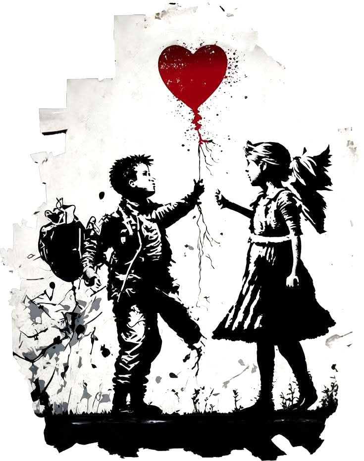 La petite fille identifiée comme un personnage va vivre de détournements en détournements des aventures. Elle sera accompagnée d’un petit garçon. Le couple après leur rencontre incarnera de grandes causes : le pacifisme et le refus de la guerre, le drame des réfugiés, un monde divisé par les luttes intestines. Au passage, les artistes rendront hommage à Banksy et à Keith Haring.