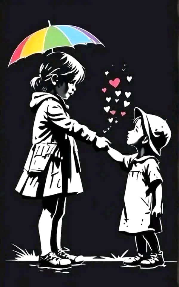 Mis bout à bout, comme les morceaux disparates d’un puzzle, les détournements racontent une histoire et plus précisément un conte : celui de la pauvre petite fille qui, seule, essaie vainement d’attraper son ballon qui s’envole, qui y parvient et dans sa quête rencontre l’amour. La petite fille et le petit garçon seront les militants des causes justes et en seront récompensés en prenant leur place au sein d’une famille.