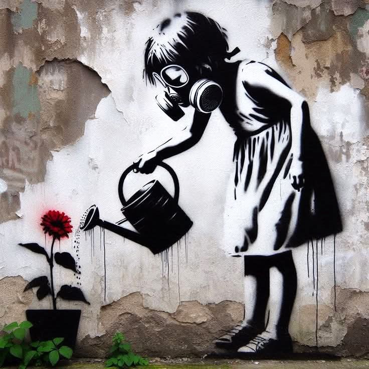 La petite fille semble s’être échappée du pochoir pour devenir un personnage à part entière. Elle est un symbole de candeur et d’innocence. Sa jeunesse et sa beauté marquent sa fragilité. A vrai dire peu de détournements prolongent les discours de Banksy. La majorité sont des divertissements, des jeux de l’esprit.